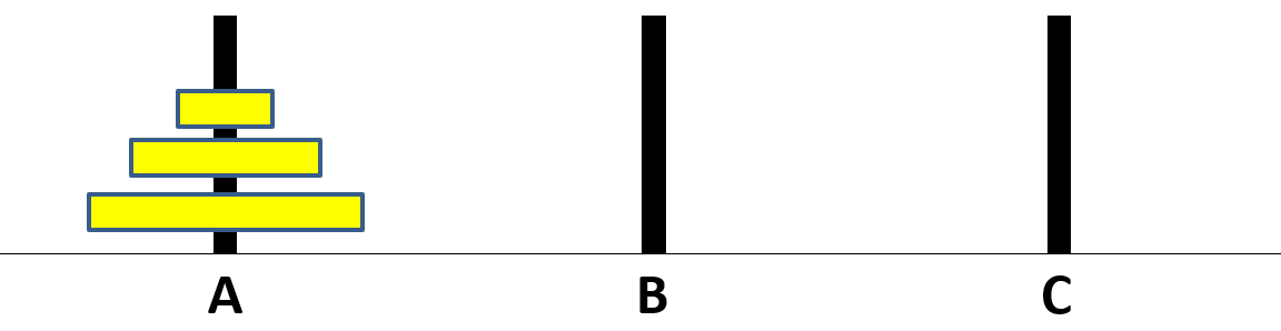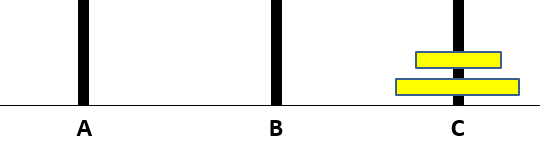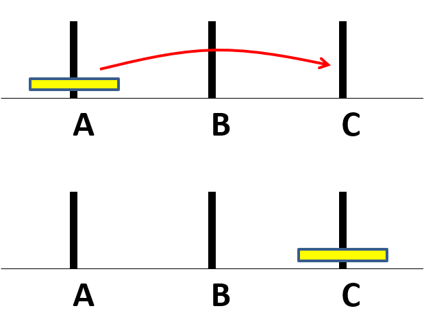 move(1, A, , B) - 將在A柱中最下方圓盤移到C柱