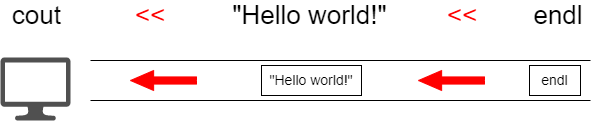 我們可以把它想像成,資料沿著 << 的方向流到螢幕那邊。