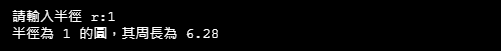cout << "半徑為 " << r << " 的圓,其周長為 " << 2*pi*r << endl;