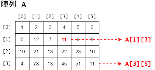 // 宣告一個 4 x 6 的 int 二維陣列