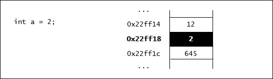 由於每次程式載入記憶體執行時可能都在不同的位置,因此這次變數 a 儲存在 0x22ff18 不表示下次執行時它也會儲存在 0x22ff18。使用取址(address-of)運算子 &可以取得變數目前在記憶體中的位址。